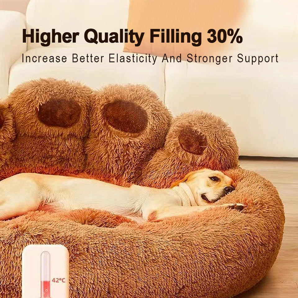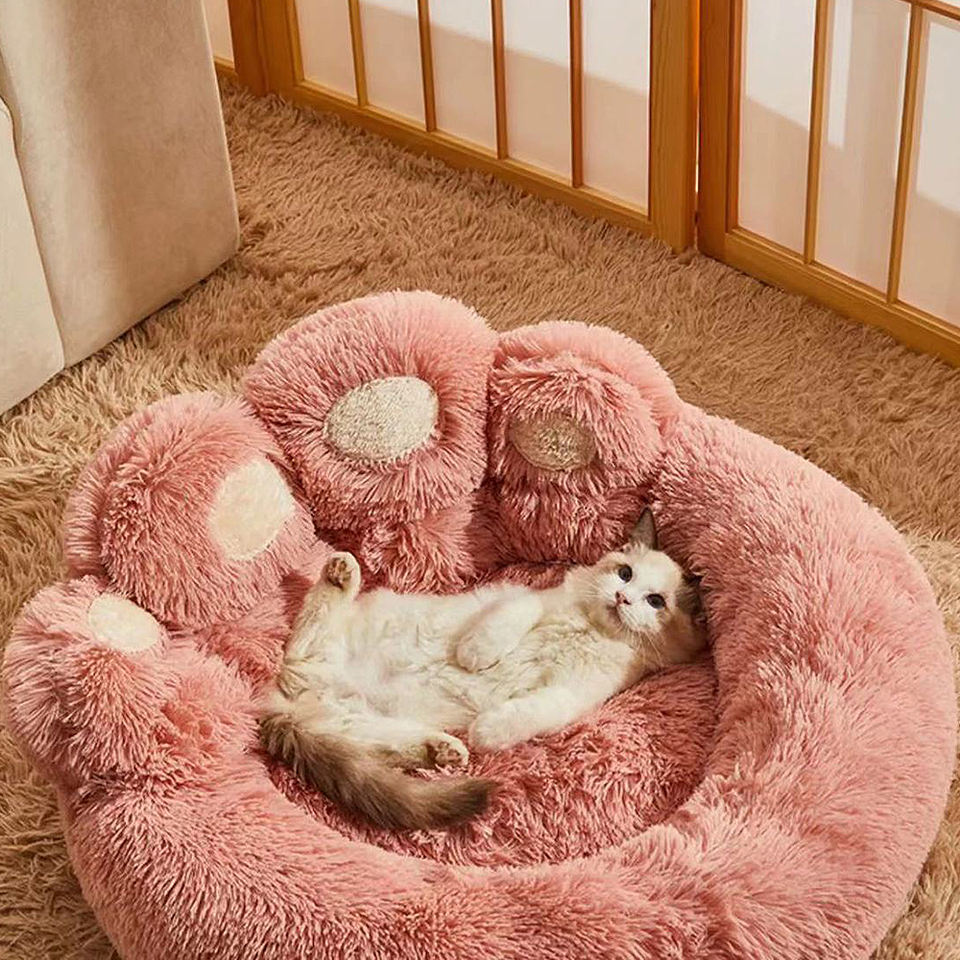 Lit pour chien et chat de haute qualité, moderne, classique, avec logo personnalisé, en peluche, en forme de patte d'ours, portable, pliable, emballé dans une boîte