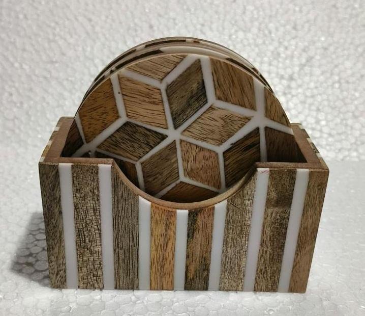 Ensemble de sous-verres en résine de cèdre et d'acacia de haute qualité au design moderne, sous-verres pour tasses à thé et à café avec support de table pour la maison