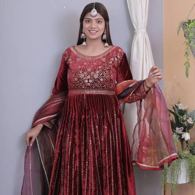 Costume indien de conception moderne de haute qualité pour les vêtements de fête et les femmes de mariage costume coupé Naira de l'Inde pour l'exportation aux prix de gros