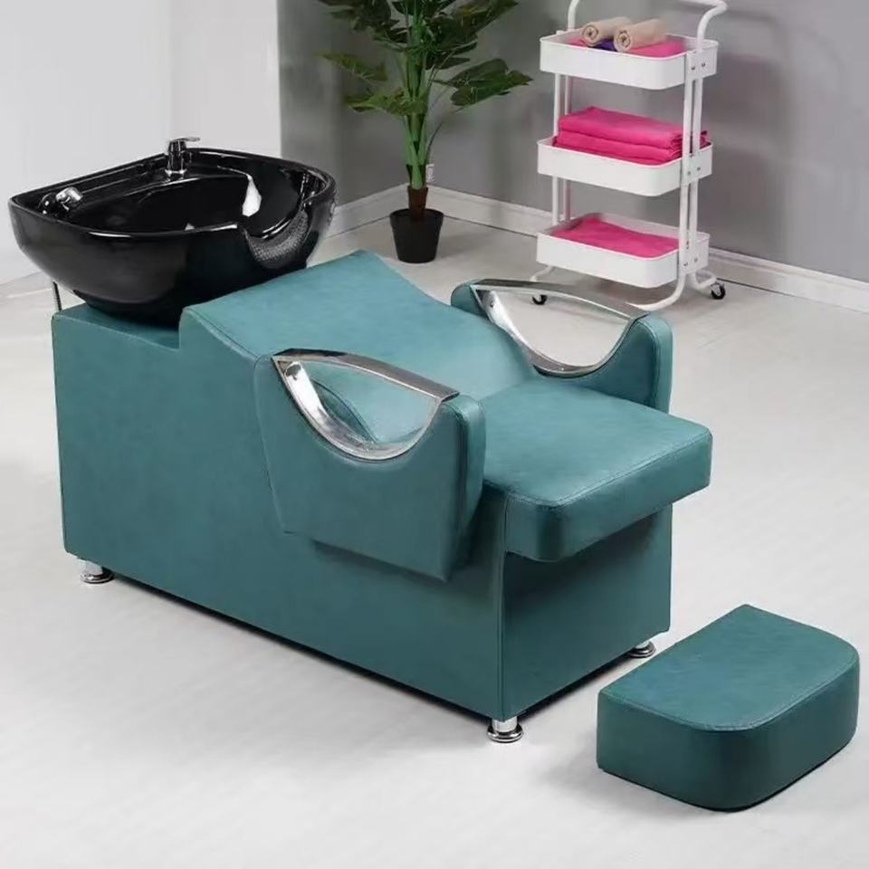 Chaise de lavage de tête en cuir synthétique de haute qualité au design moderne pour salon de coiffure, lit de lavage pour shampooing pour salons