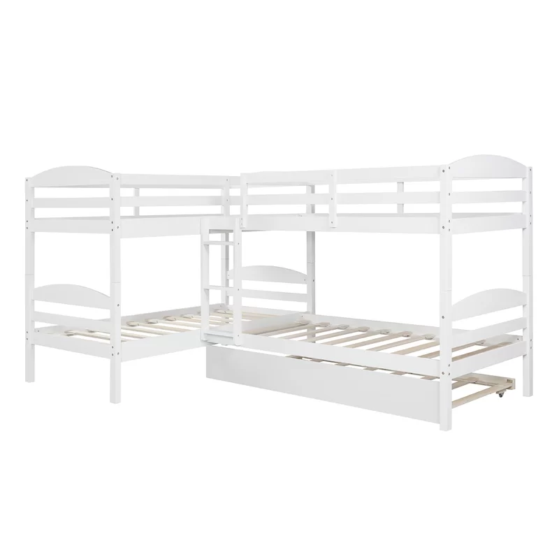 Nom du produit:Lit superposé double en bois blanc sur lit double à 4 niveaux en forme de L avec gigogne