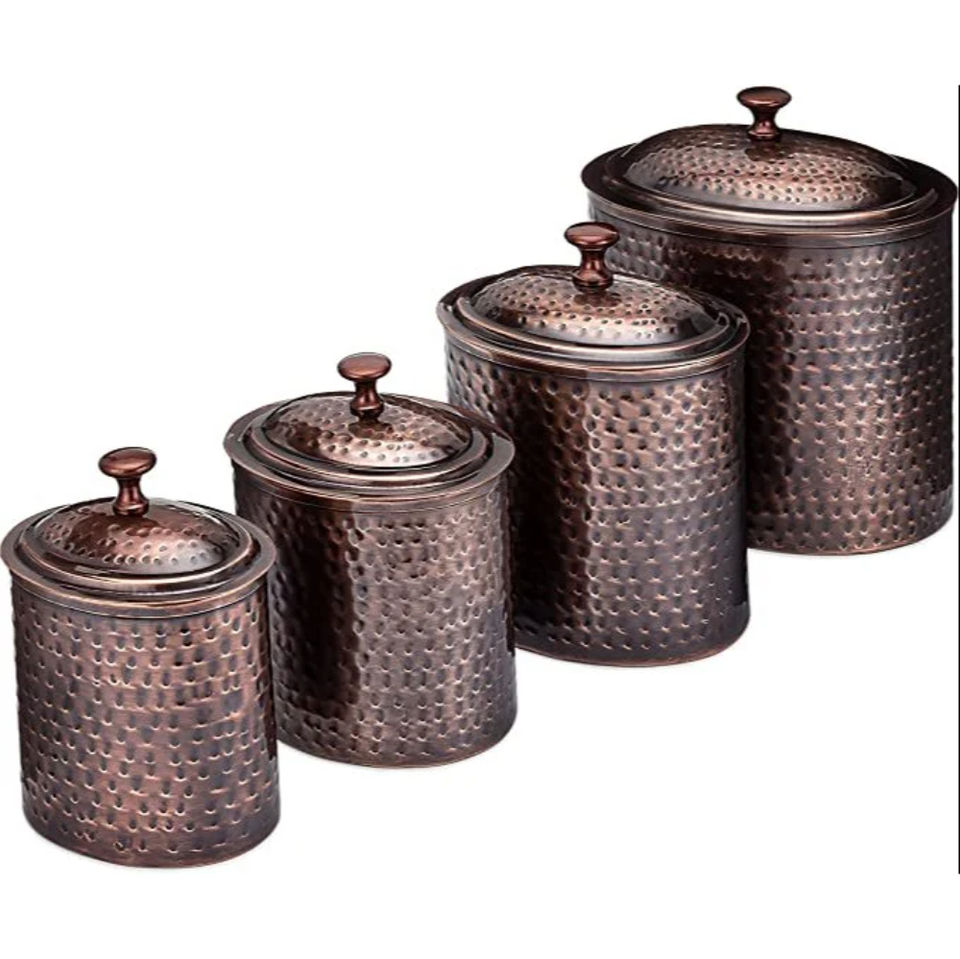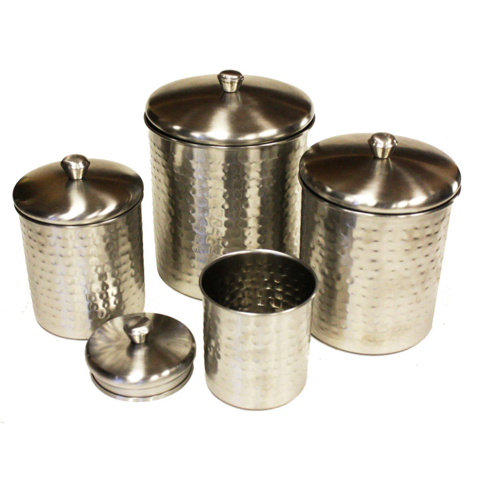 Ensemble de 4 bocaux de conservation en acier inoxydable martelé à la main, écologiques et modernes, avec couvercles, pour cuisine et thé