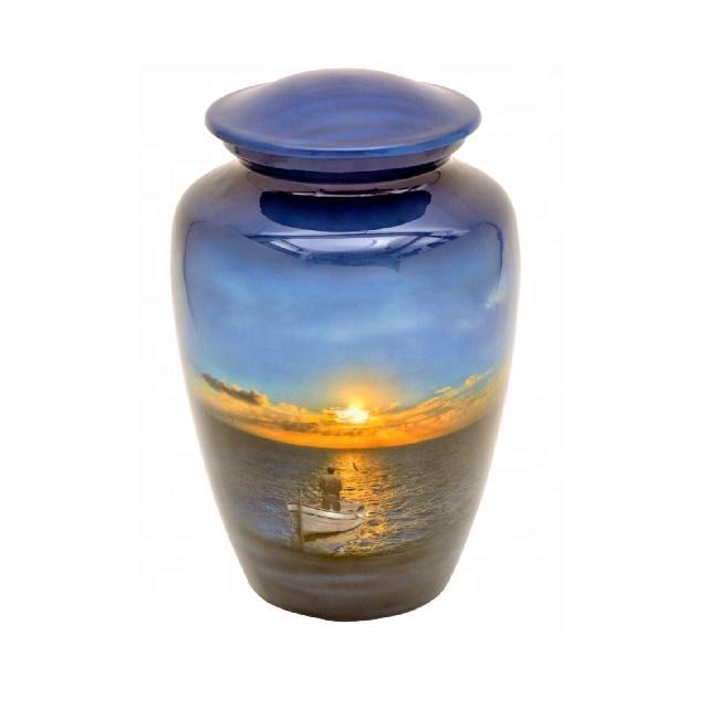 Urne funéraire européenne moderne en métal de haute qualité finition émail multicolore nouveau style conception de jeu de soleil pour les services funéraires