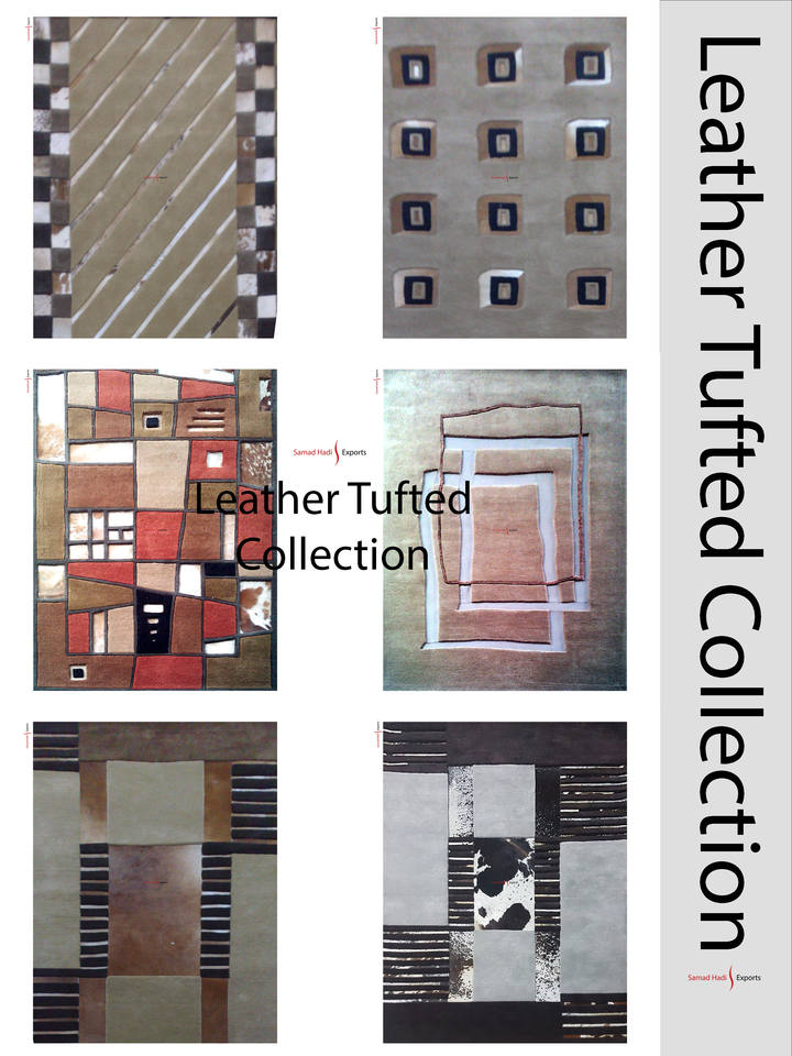Tapis en laine de Nouvelle-Zélande de haute qualité, design géométrique moderne, tufté à la main, avec patchwork en cuir abstrait, pour la maison, le salon