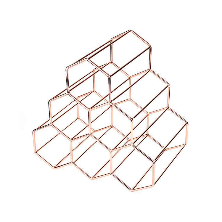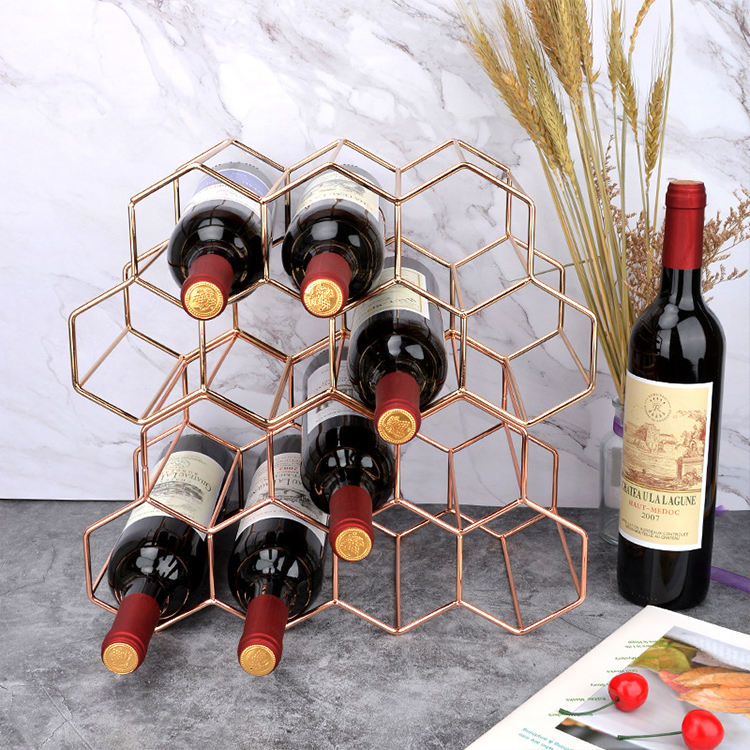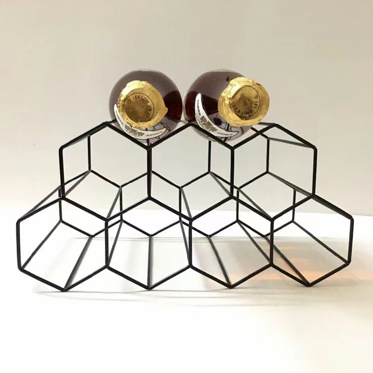 Porte-bouteilles en fer forgé noir et or, design moderne et décoratif, de haute qualité, pour présentation de vin lors de fêtes