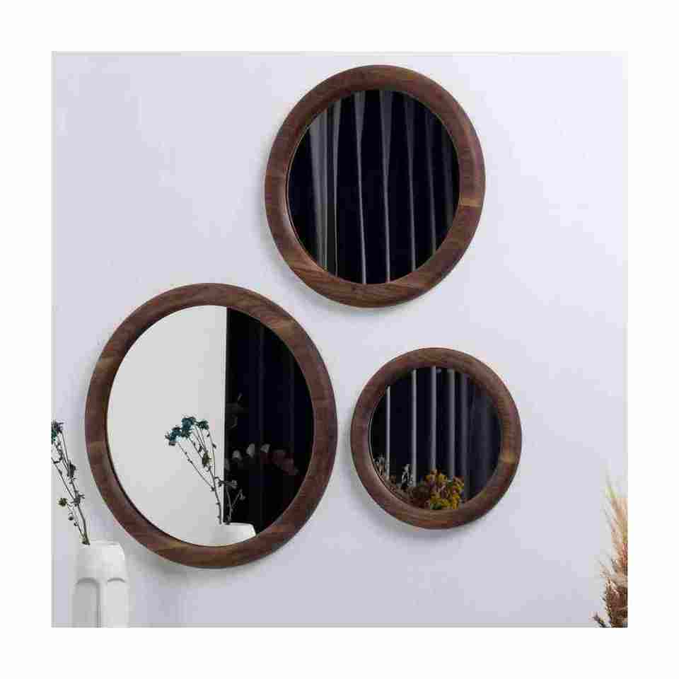 Miroir de mariage moderne à cadre en bois rond de haute qualité fabriqué à la main par les meilleurs fabricants et exportateurs de l'Inde pour une utilisation murale