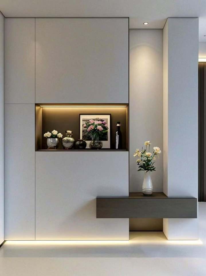 Armoire à 2 tiroirs et 3 portes avec miroir et armoire supérieure