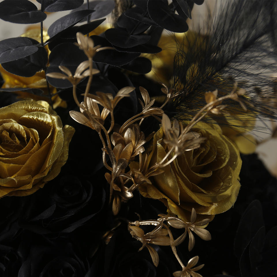 Haute qualité Style moderne artificiel noir or Rose fleur boules soie Table de mariage pièce maîtresse et arrangement