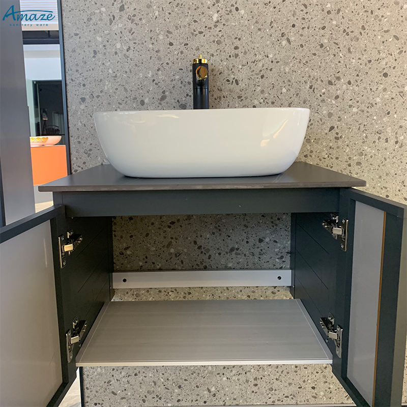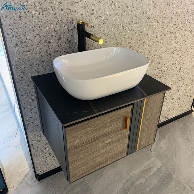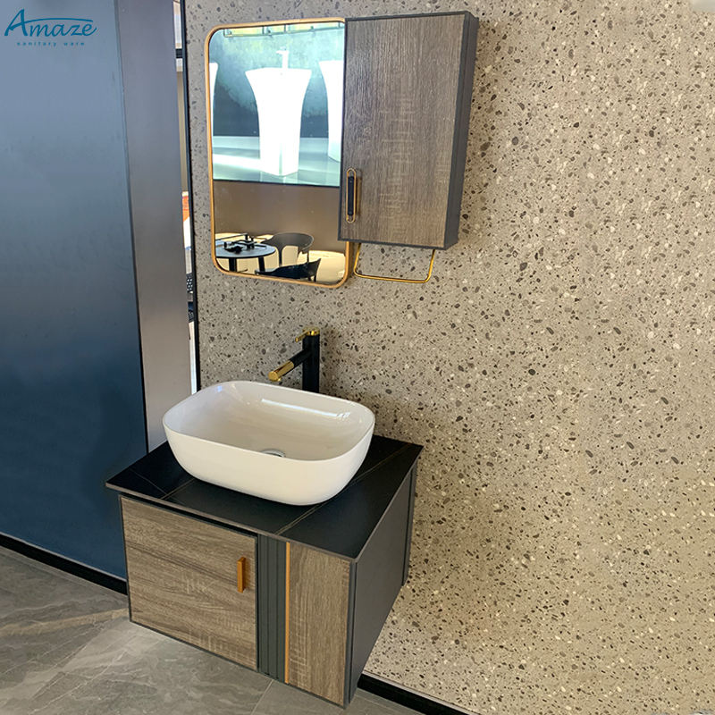 Meuble-lavabo de salle de bain avec plan de travail en marbre de style moderne de haute qualité avec armoire à miroir étanche