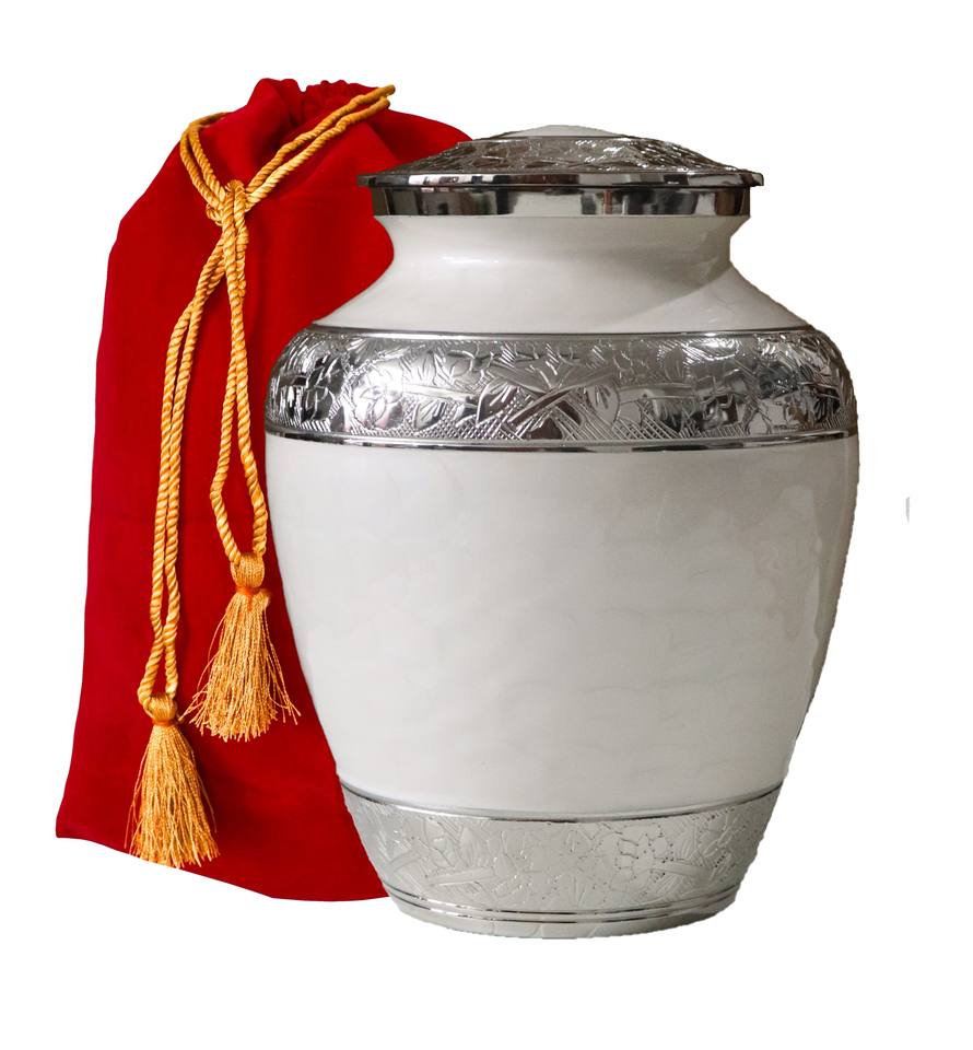 Urne funéraire en aluminium de haute qualité, moderne et traditionnelle, religieuse, émaillée, gravure de qualité supérieure, blanche, 10 pouces, urne funéraire commémorative