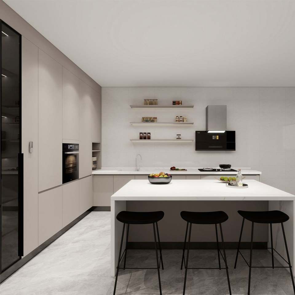 Armoire de cuisine moderne en bois de haute qualité Porte vitrée complète Contreplaqué PVC Vente en gros Usine Conception personnalisée Armoire d'îlot bon marché