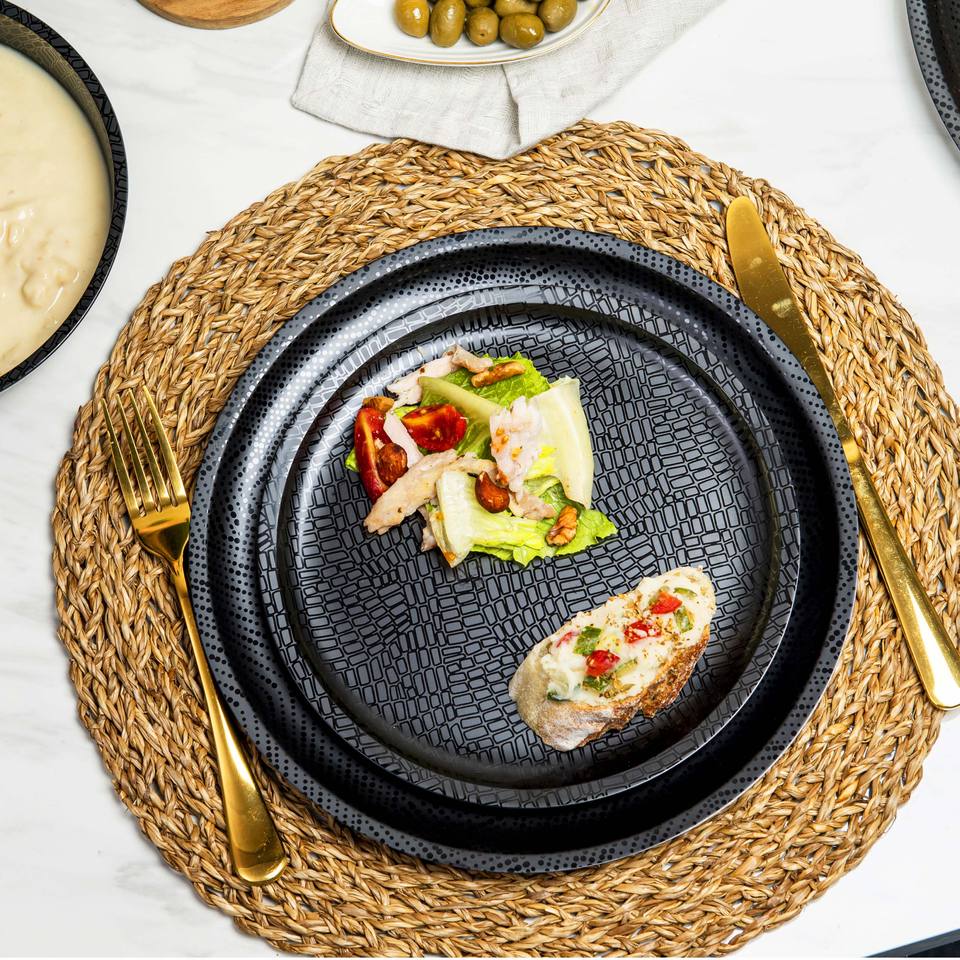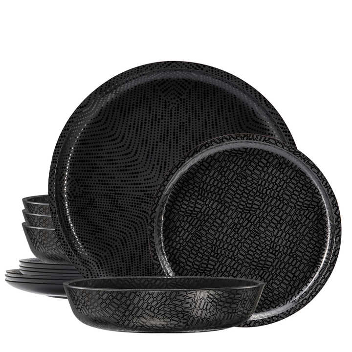 Service de table de haute qualité en mélamine noire monochrome, 12 pièces, luxe, 100% mélamine