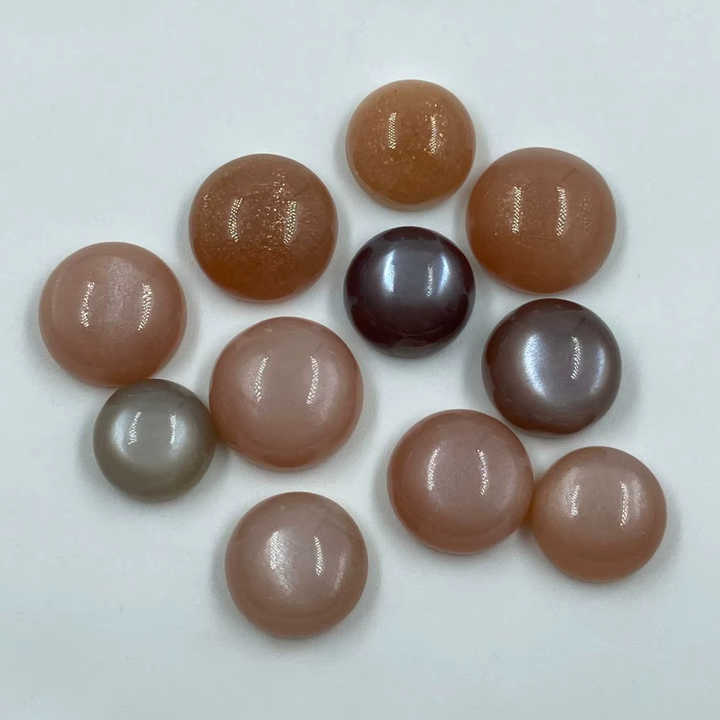 Pierre de Lune de Haute Qualité, Couleurs Mixtes, Coupe Ronde Brillante, 11 Pièces, Pierre Naturelle, 47,20 Carats, pour la Fabrication de Bijoux