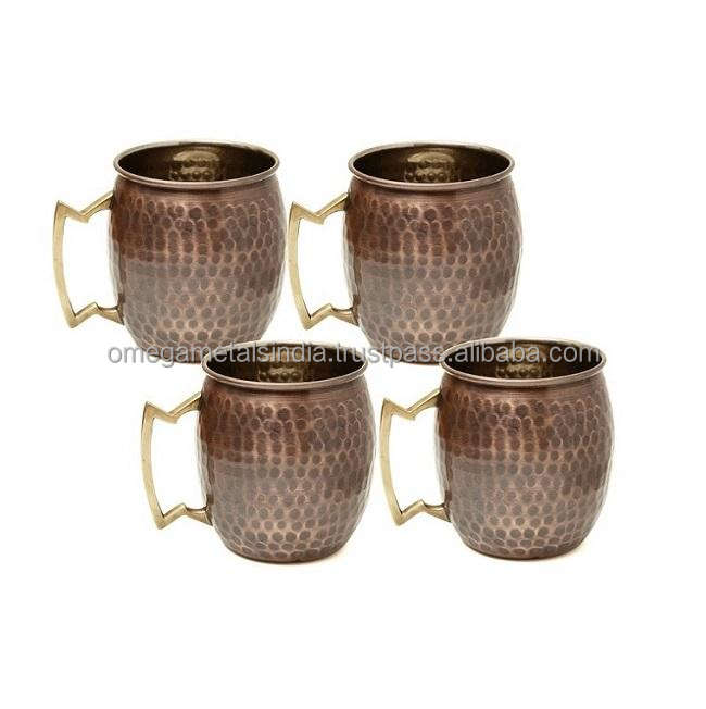 Tasses en cuivre Moscow Mule de haute qualité pour service de bière Lot de 4 avec touche en cuivre finie
