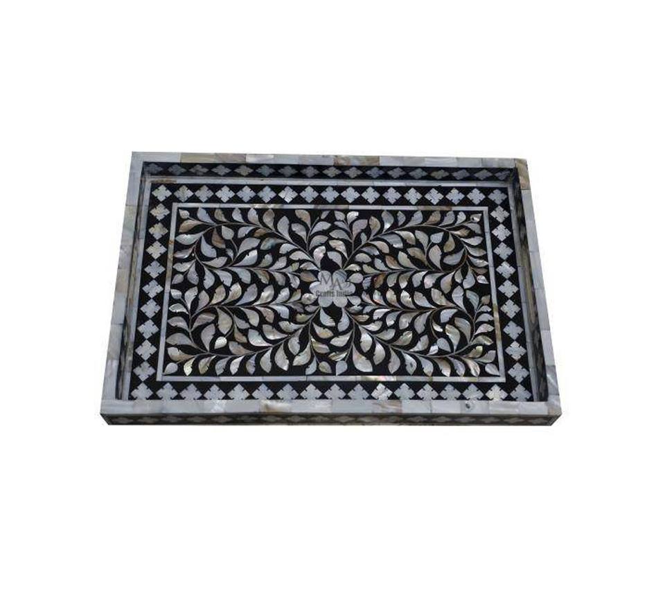 Plateau de service rectangulaire en bois/MDF avec incrustation de nacre de haute qualité, design classique fait main, pour la maison, l'hôtel, le restaurant, artisanat