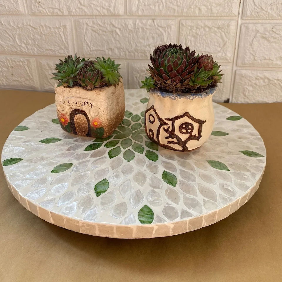 Mère de perle incrustation Lazy Susan plateau plateau tournant organisateurNom du produit
