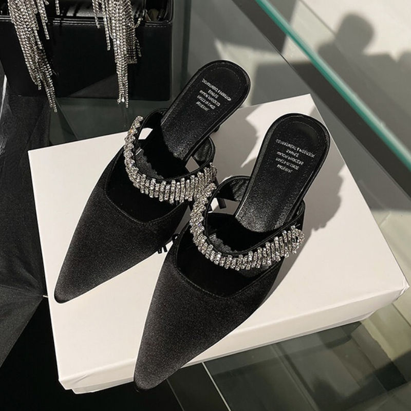 Mules de haute qualité, pantoufles à talons de 7 cm, talons en strass de luxe pour femmes