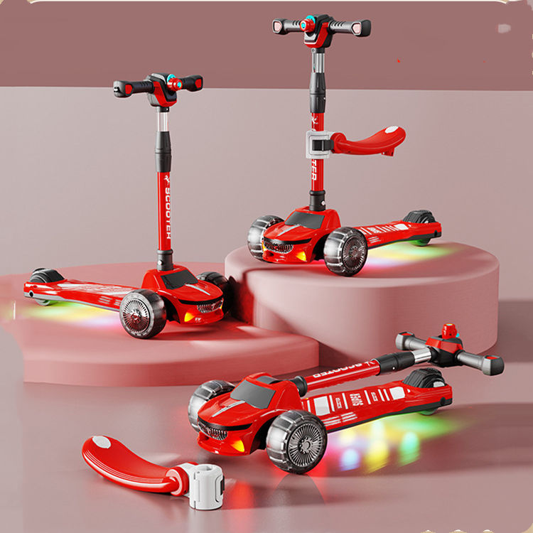 Trottinette multifonctionnelle de haute qualité pour enfants pédale pliable en PU avec 3 roues en PU en acier et aluminium pour une utilisation en extérieur