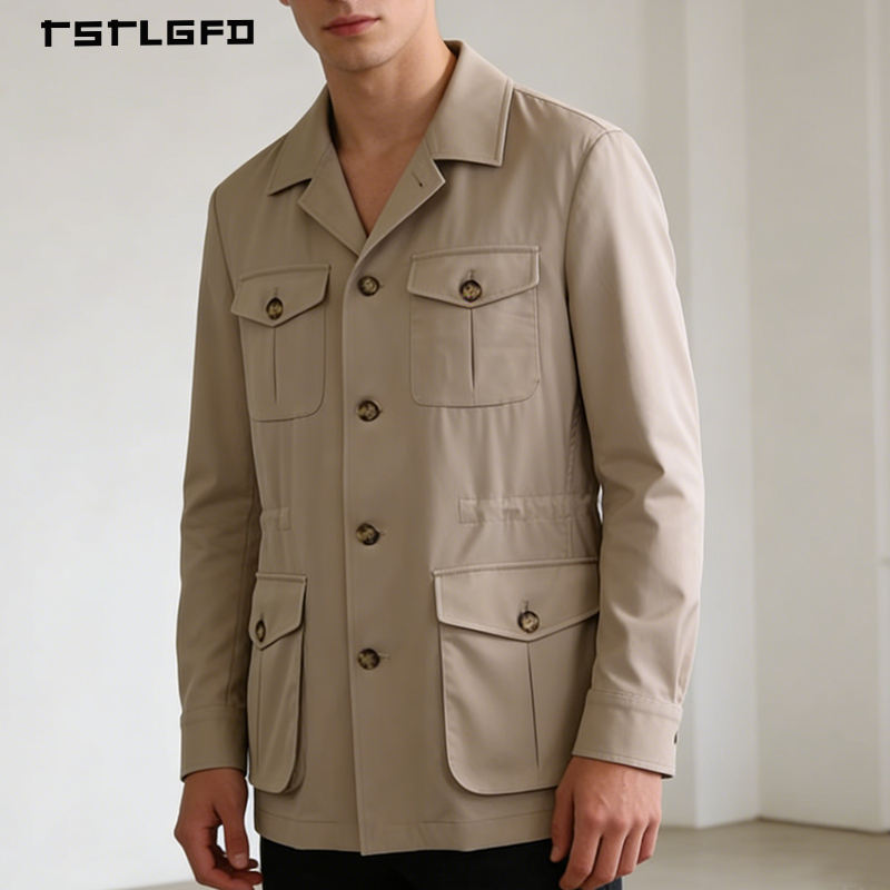 Veste Safari en Toile Multi-Poches de Haute Qualité, Logo Personnalisé, Fournisseur OEM, Design Tendance à Boutonnage Simple pour Sports de Plein Air et Chasse