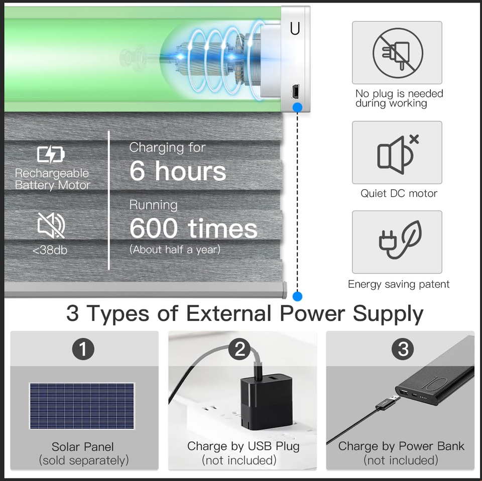 Store Enrouleur Automatique Sans Fil Haute Qualité Multi-Scénarios, Design Élégant, pour Maison et Bureau