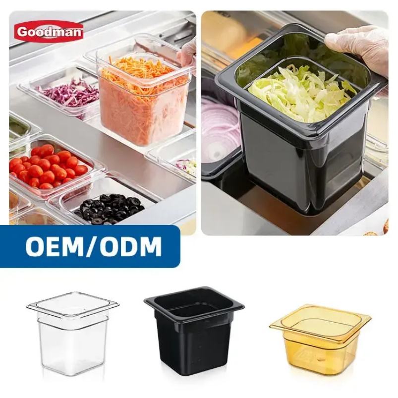Conteneur alimentaire gastronorme GN multi-tailles de haute qualité, en plastique PC transparent/noir, équipement de cuisine pour restaurant et hôtel, Goodman FP3019