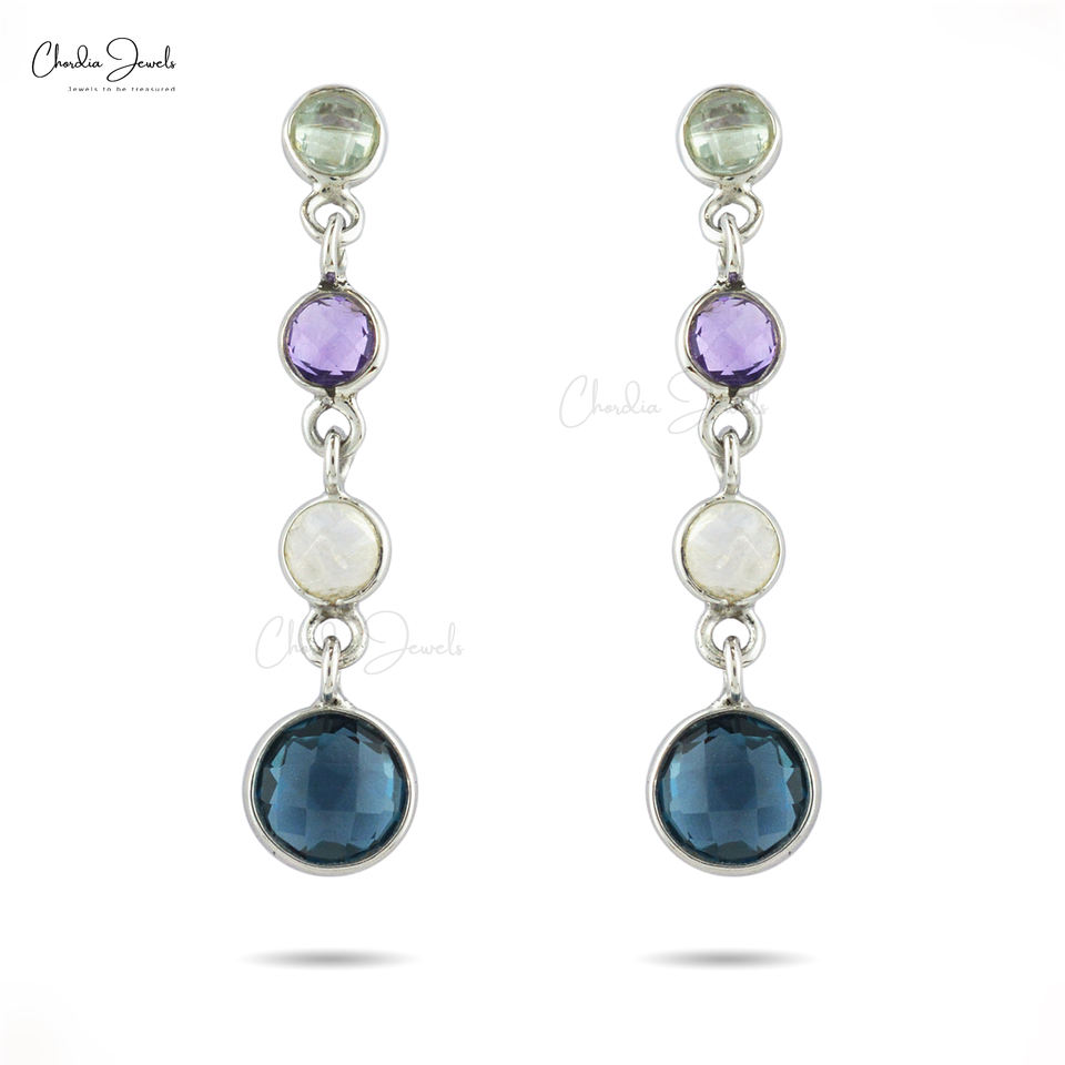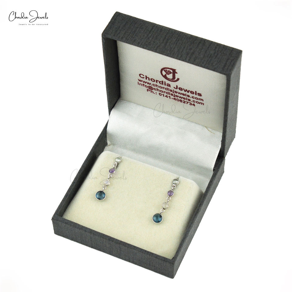 Boucles d'oreilles pendantes multi-pierres de haute qualité avec fermoir à pression, fabriquées à la main en argent sterling 925, boucles d'oreilles en pierres précieuses à prix réduit