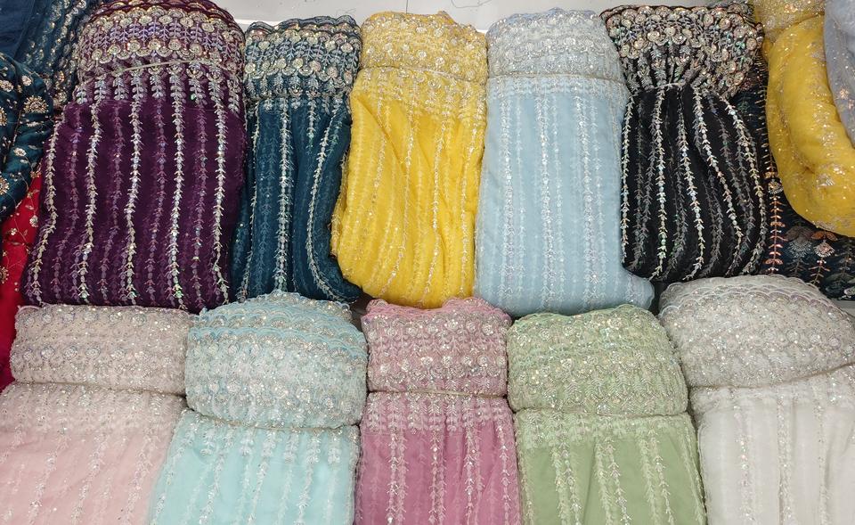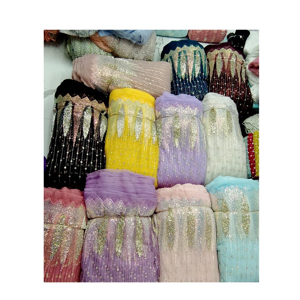 Tissu de filet de broderie de plusieurs couleurs de haute qualité pour faire le tissu de filet de travail manuel de robe de soirée