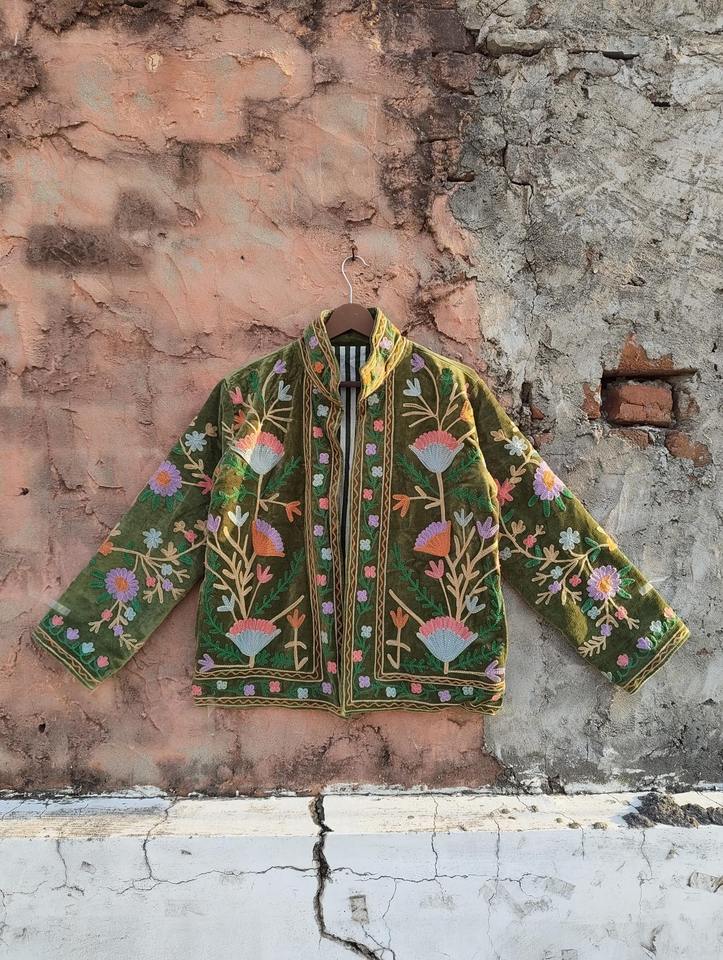 Veste en velours brodée à la main de haute qualité Mustad, manteau bohème à fleurs, veste pour femmes, taille unique