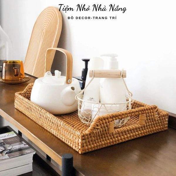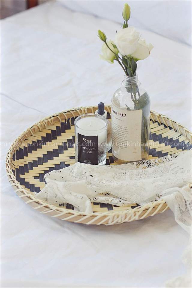 Plateau de service en rotin en osier de bambou naturel de haute qualité pour ustensiles de cuisine accessoires de maison et artisanat de décoration