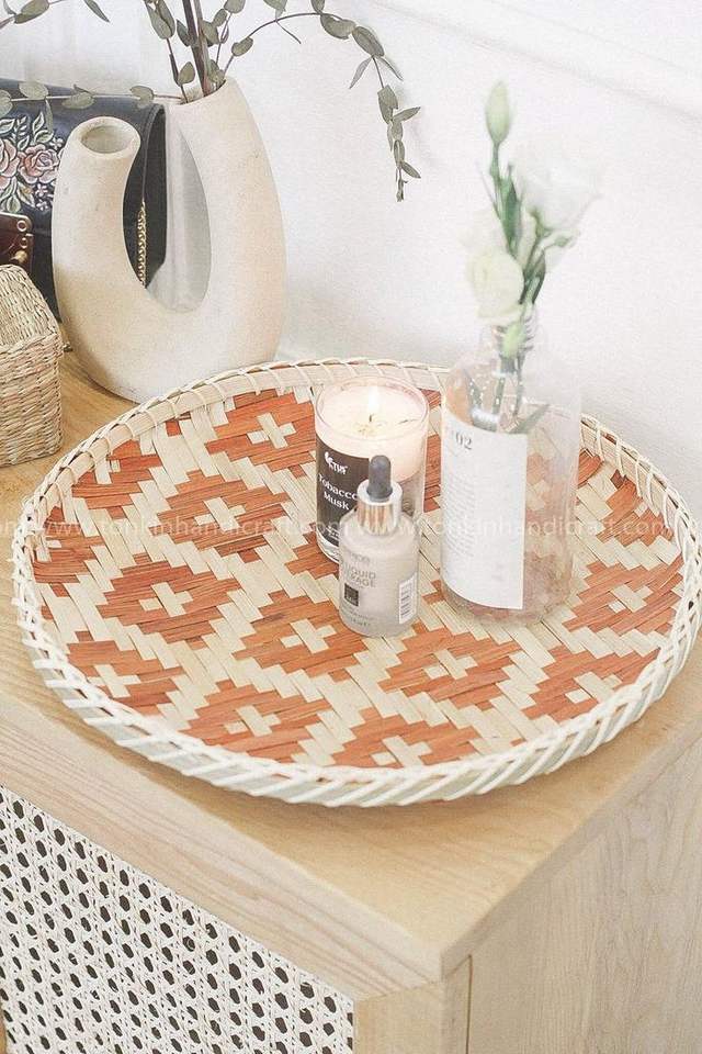 Plateau de service en rotin en osier de bambou naturel de haute qualité pour ustensiles de cuisine accessoires de maison et artisanat de décoration