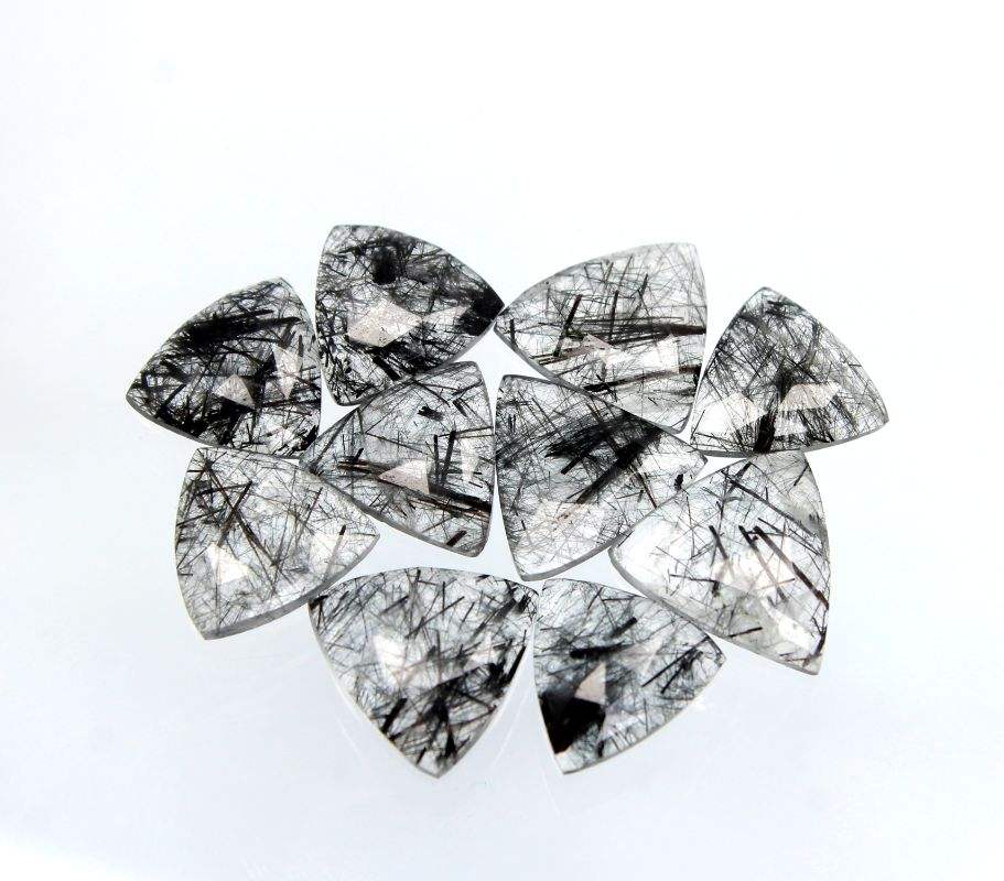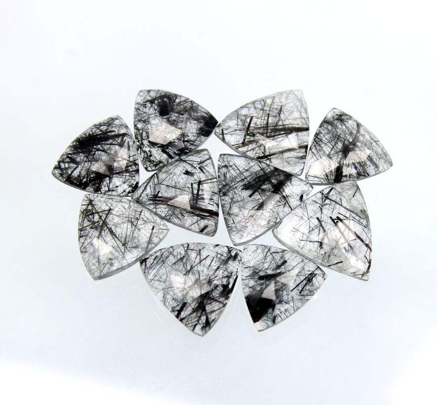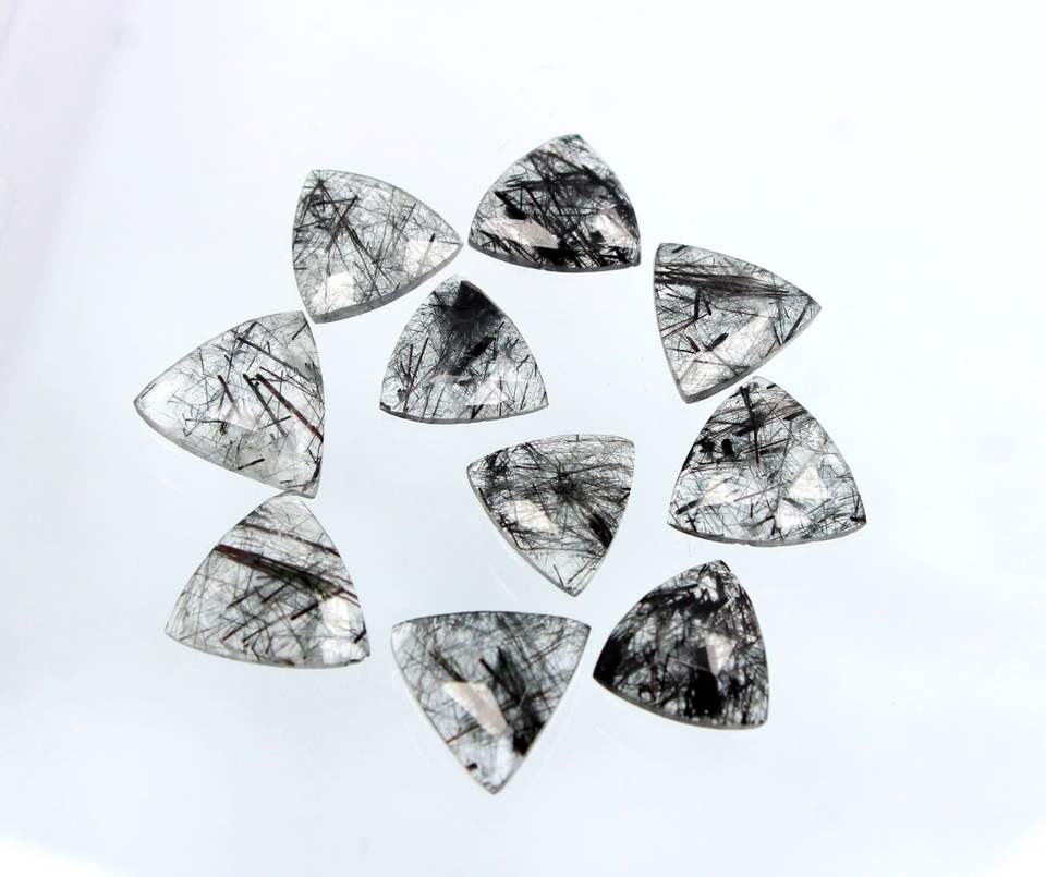 Haute Qualité Naturel Noir Rutile À Facettes Pierres Précieuses 14mm Rose Cut Pierre Cabochon Trillion Forme Fabrication De Bijoux Pierres Précieuses En Vrac