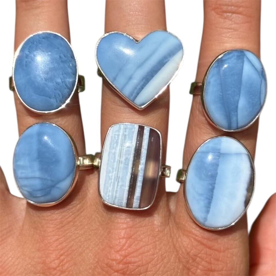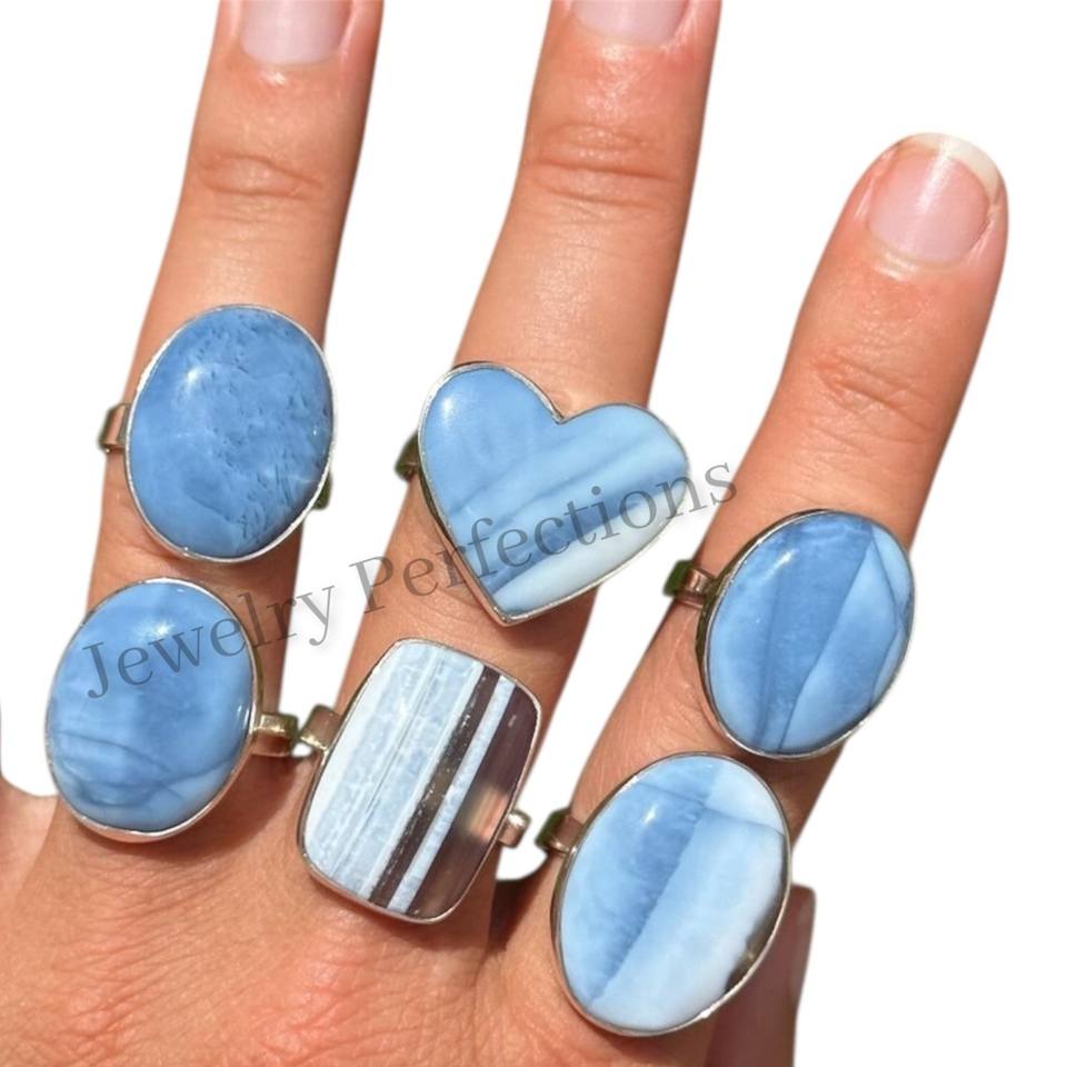 Product name:Natural Blue Opal Gemstones Silver Plated Brass Rings