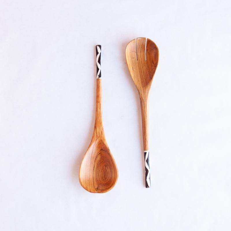 Ensemble de serveurs à salade en bois de haute qualité, couleur naturelle, sans danger pour les aliments, durable, pour une utilisation à la maison et sur les tables d'hôtel