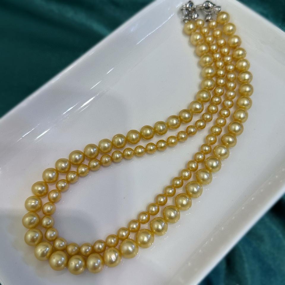 Collier de perles d'eau douce AK en or concentré naturel de haute qualité, double rangée de perles d'or Nanyang, comparable au collier d'eau de mer