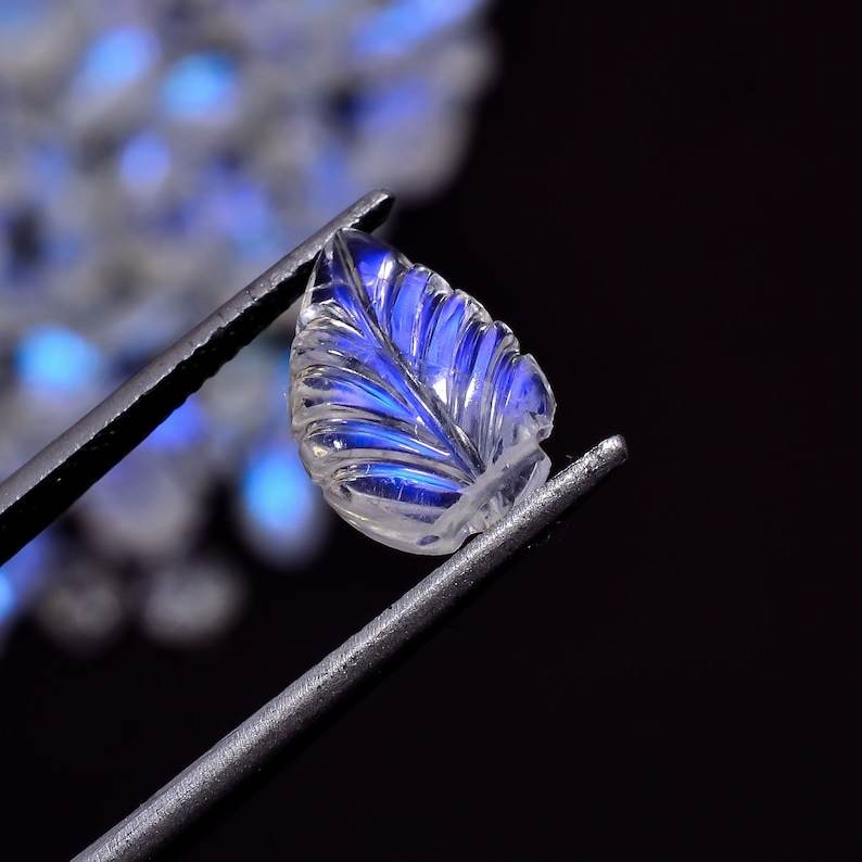 Haute qualité naturel Flashy arc-en-ciel pierre de lune feuille forme sculpture 5X7-7X11 environ bleu feu pierre de lune poli en gros