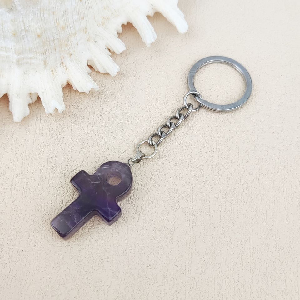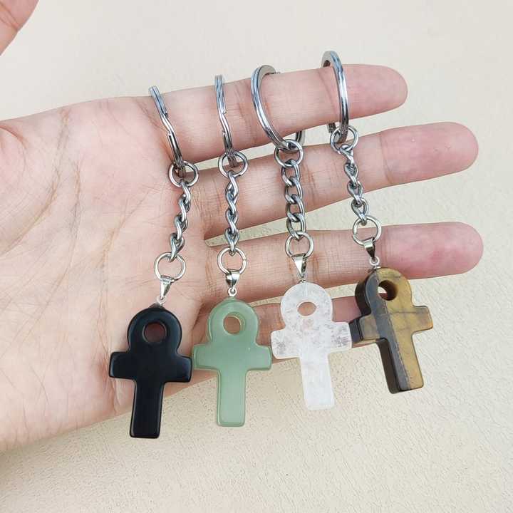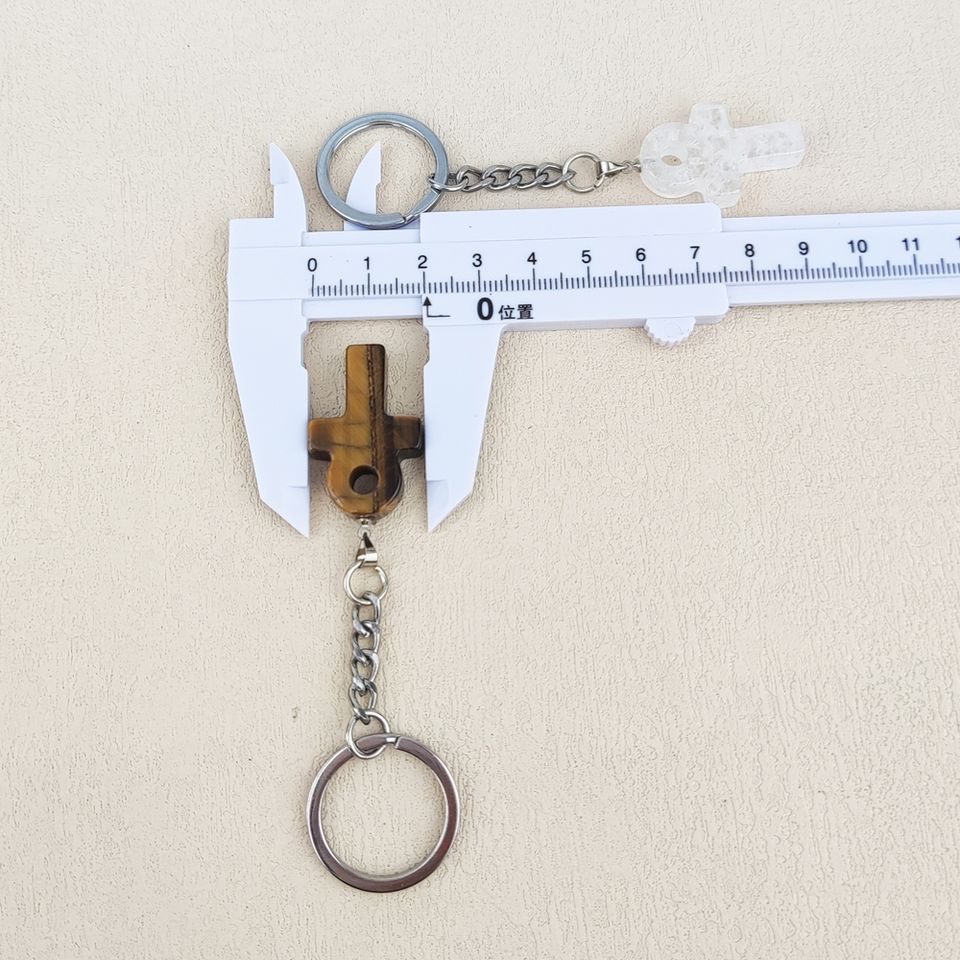Haute qualité pierre précieuse naturelle croix porte-clés améthyste Rose Quartz oeil de tigre opale Anka pendentif avec crochet en cuivre pour accessoire de sac