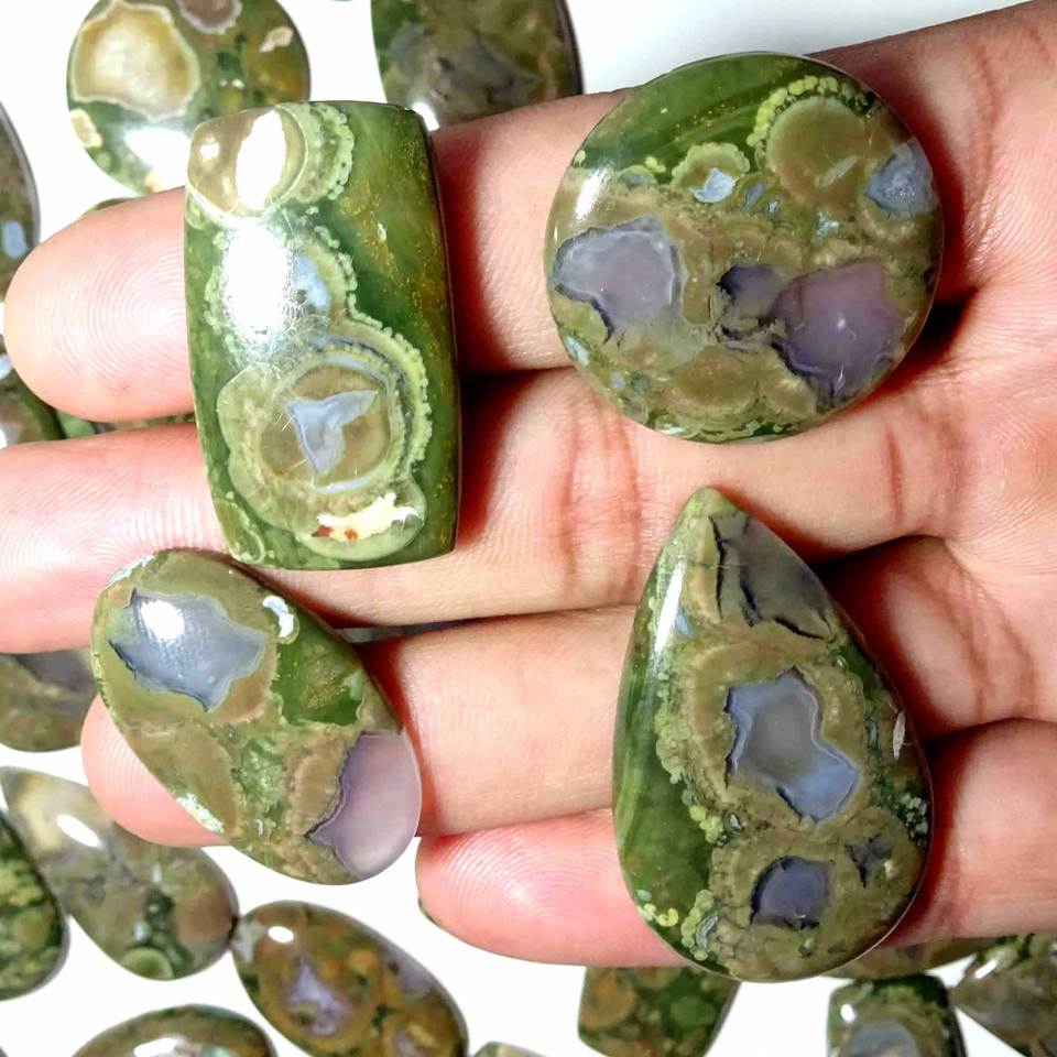 Cabines lâches de pierres précieuses de quartz rhyolite vert naturel de haute qualité avec une excellente couleur AAAAA Grade