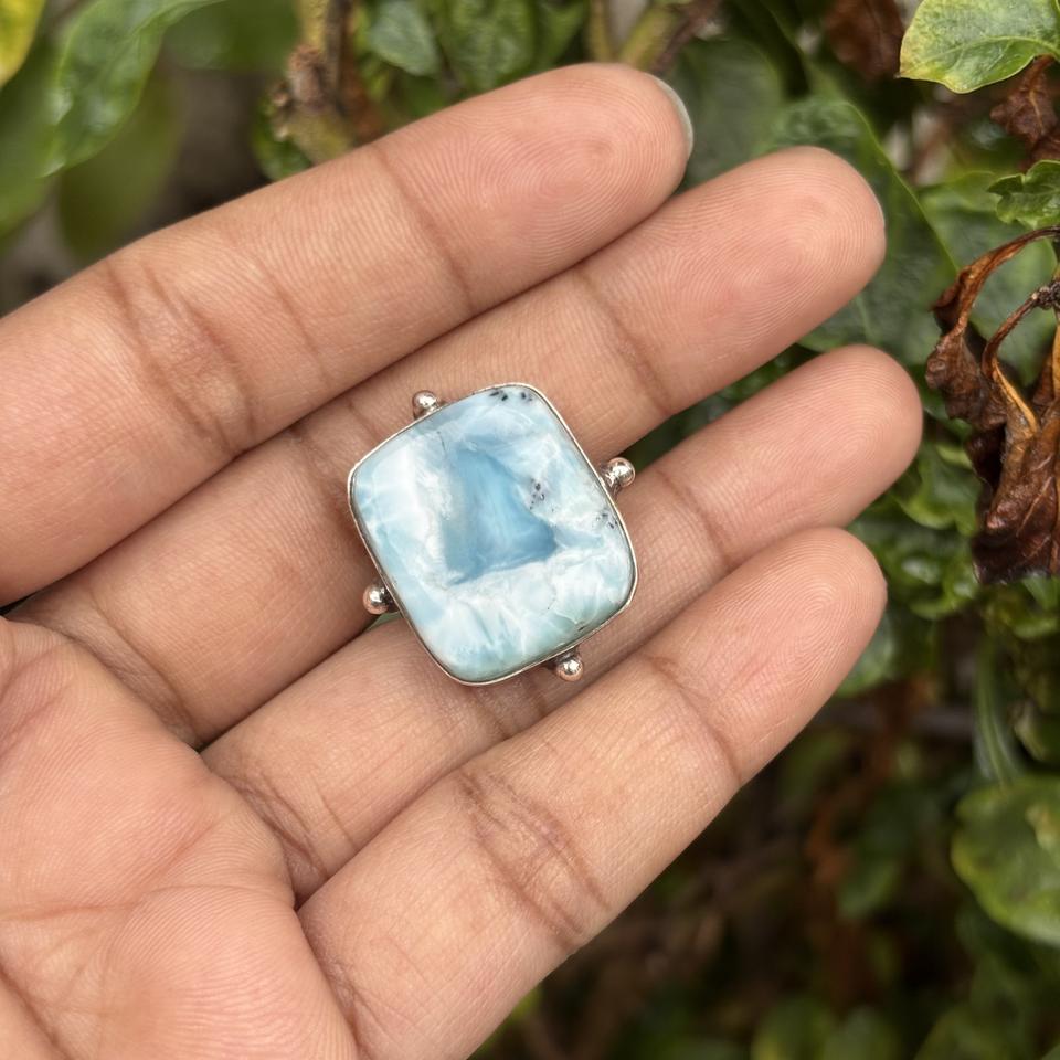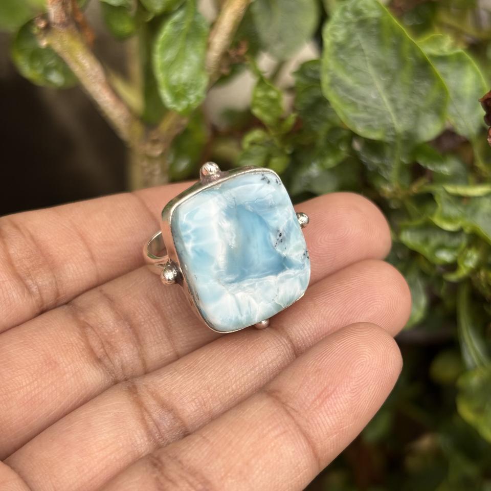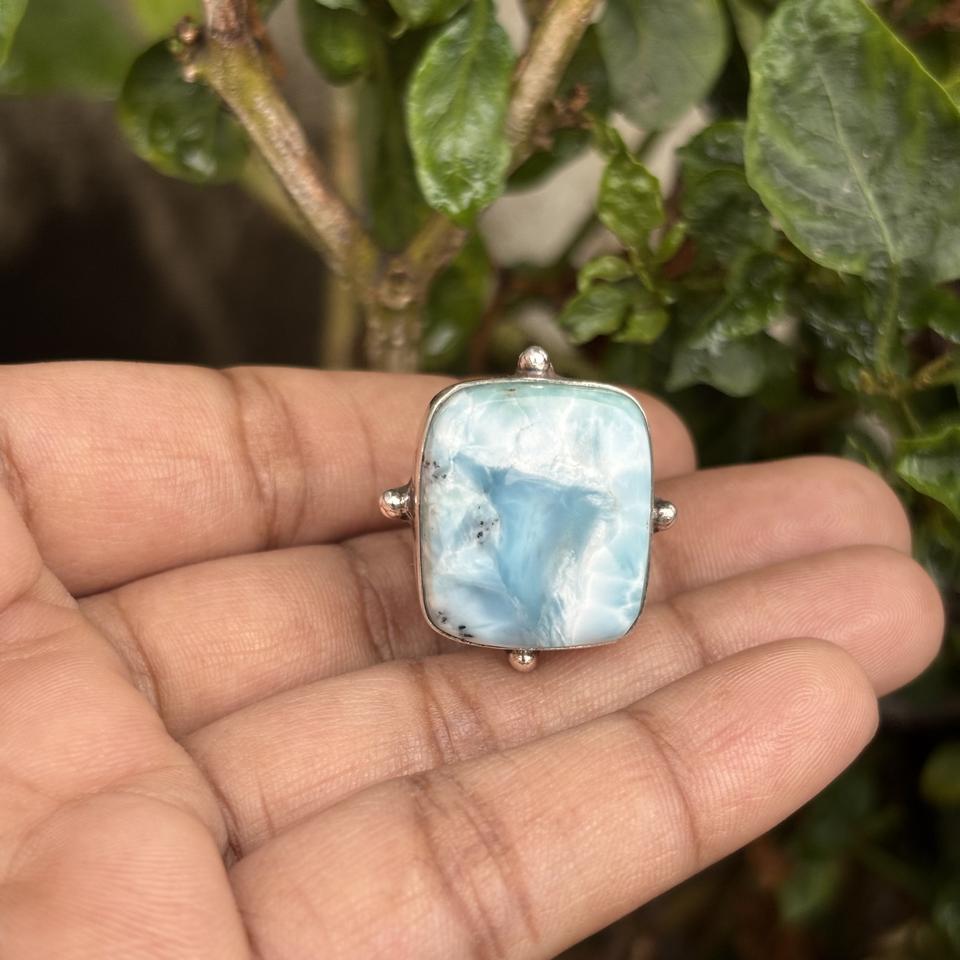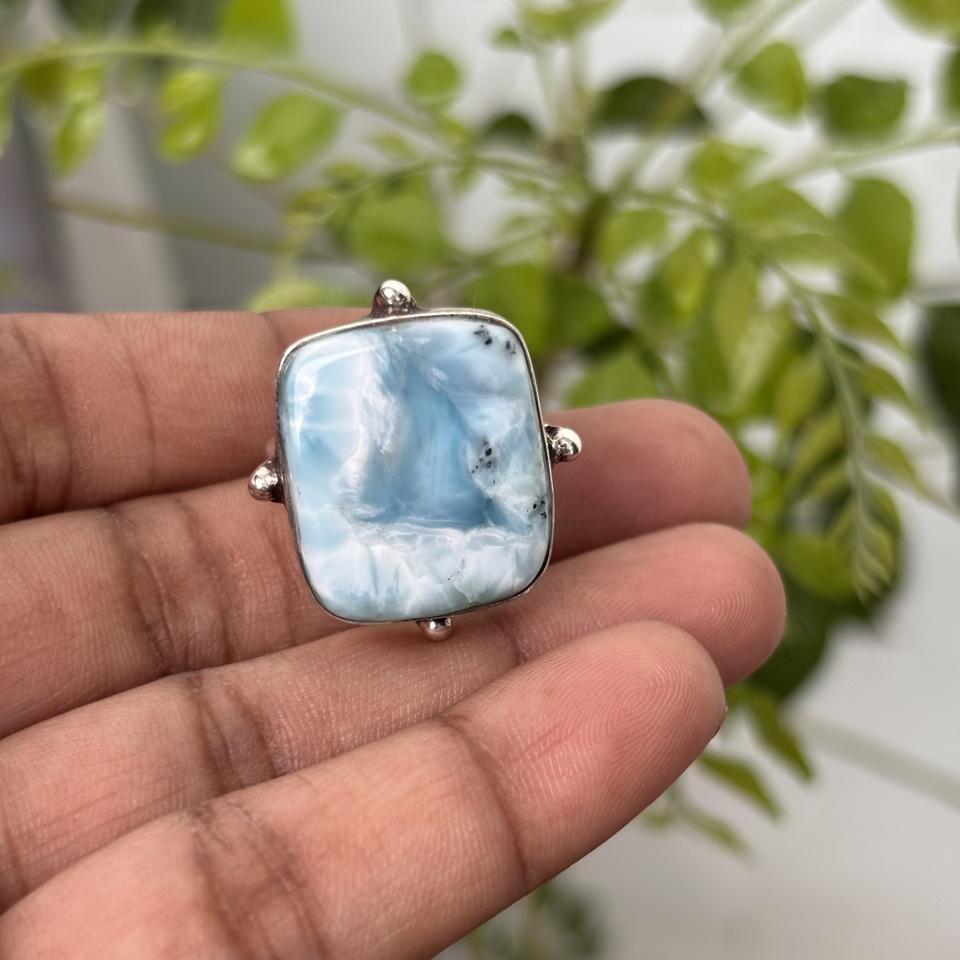 Product name:Natural Larimar Gemstones Silver Plated Brass Rings