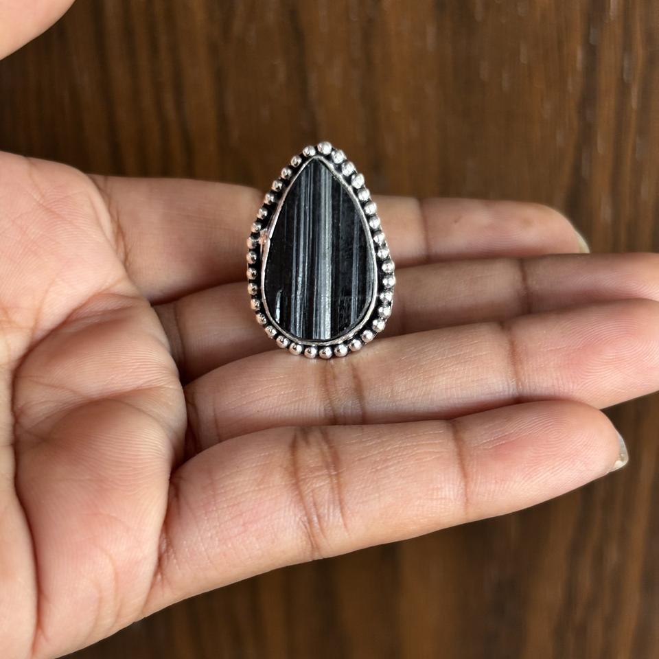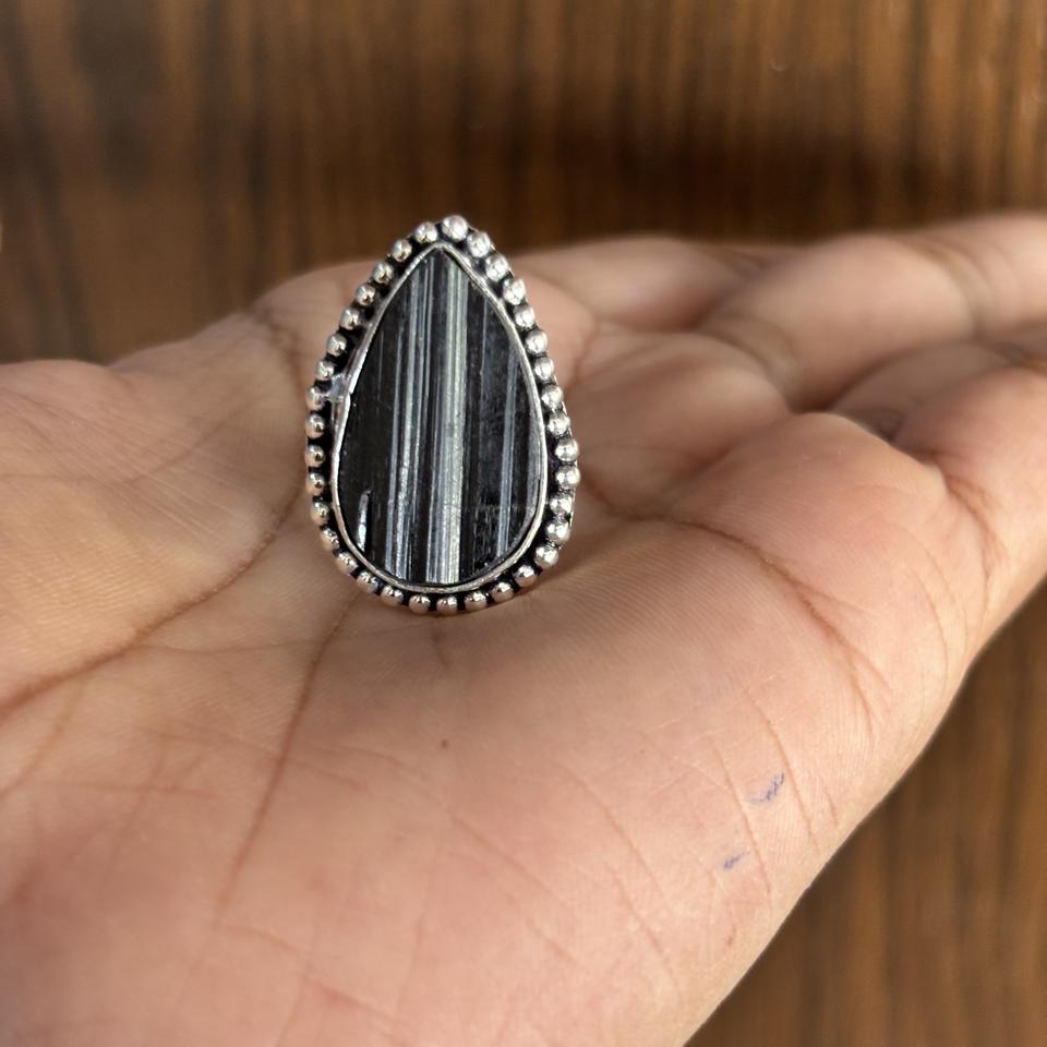 Product name:Natural Pear shape Black Tourmaline Silver Plated Brass Rings