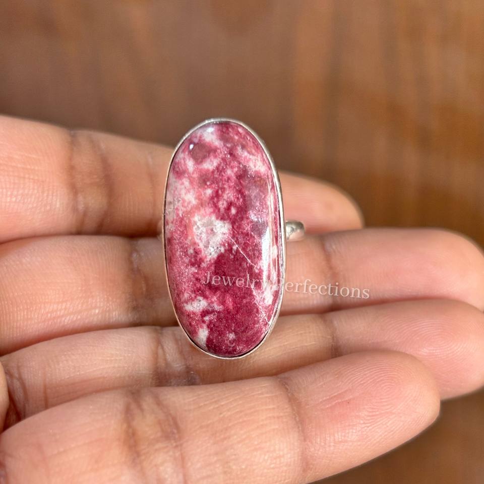 Nom du produit:Bagues en laiton argenté avec pierres de thulite rose naturelle