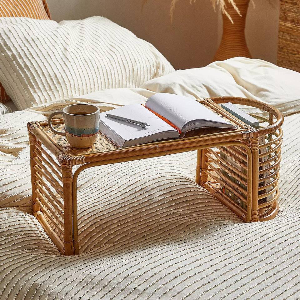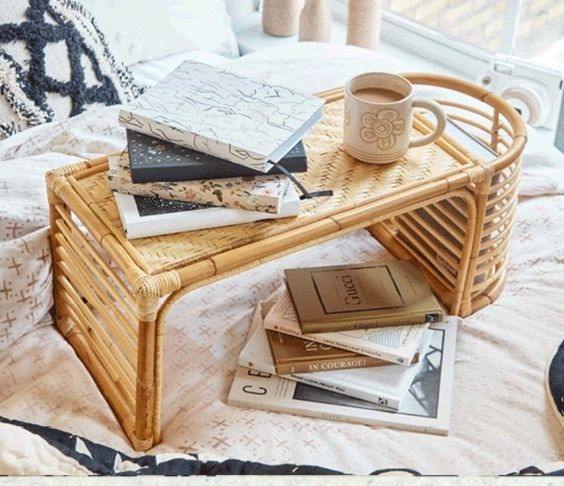 Plateau de lit en rotin naturel avec rangement
