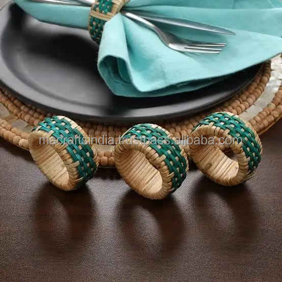 Porte-serviettes en rotin naturel de haute qualité anneaux de serviette en jute de bambou excellente vaisselle en vrac pour les fêtes de mariage Camping