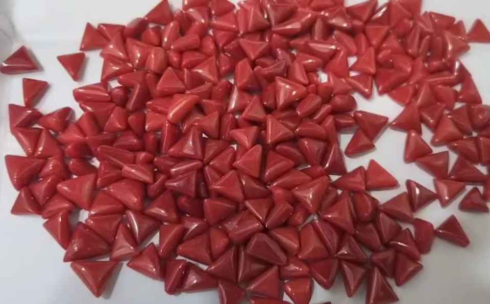 Coral rouge naturel de haute qualité Cabochon Pierre précieuse en forme de triangle en vrac pour la fabrication de bijoux Pierres précieuses en gros