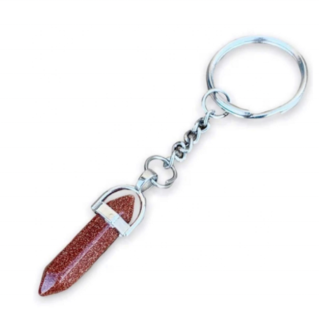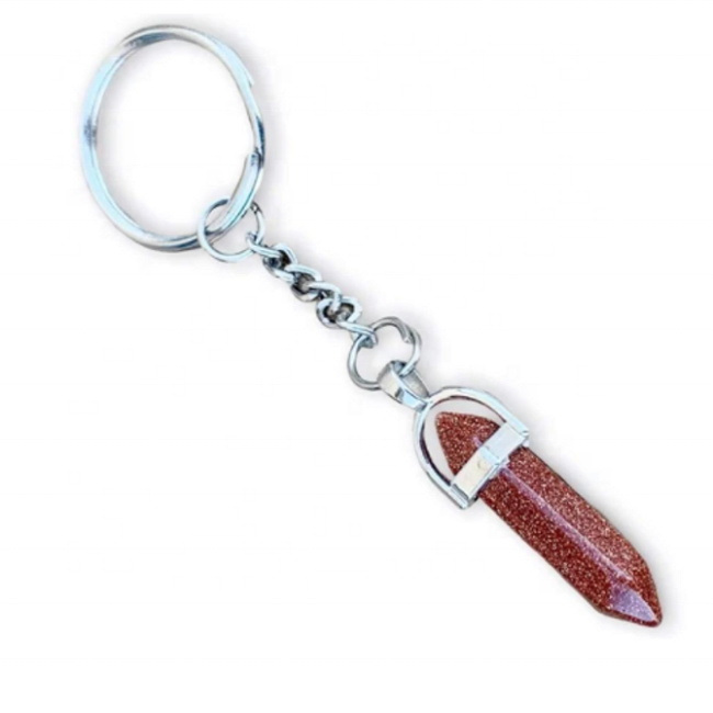 Haute qualité naturel rouge Goldstone fait à la main Double pointe colonne hexagonale cristal pierre porte-clés avec Base en métal en gros