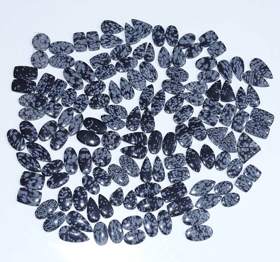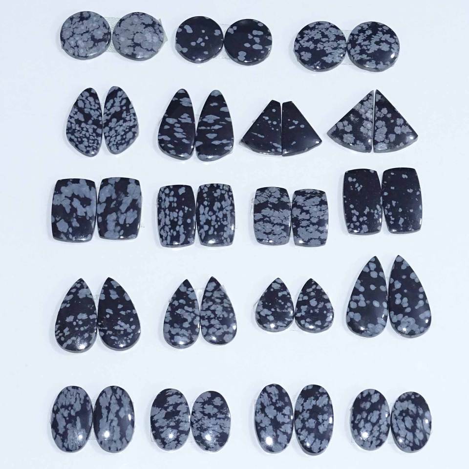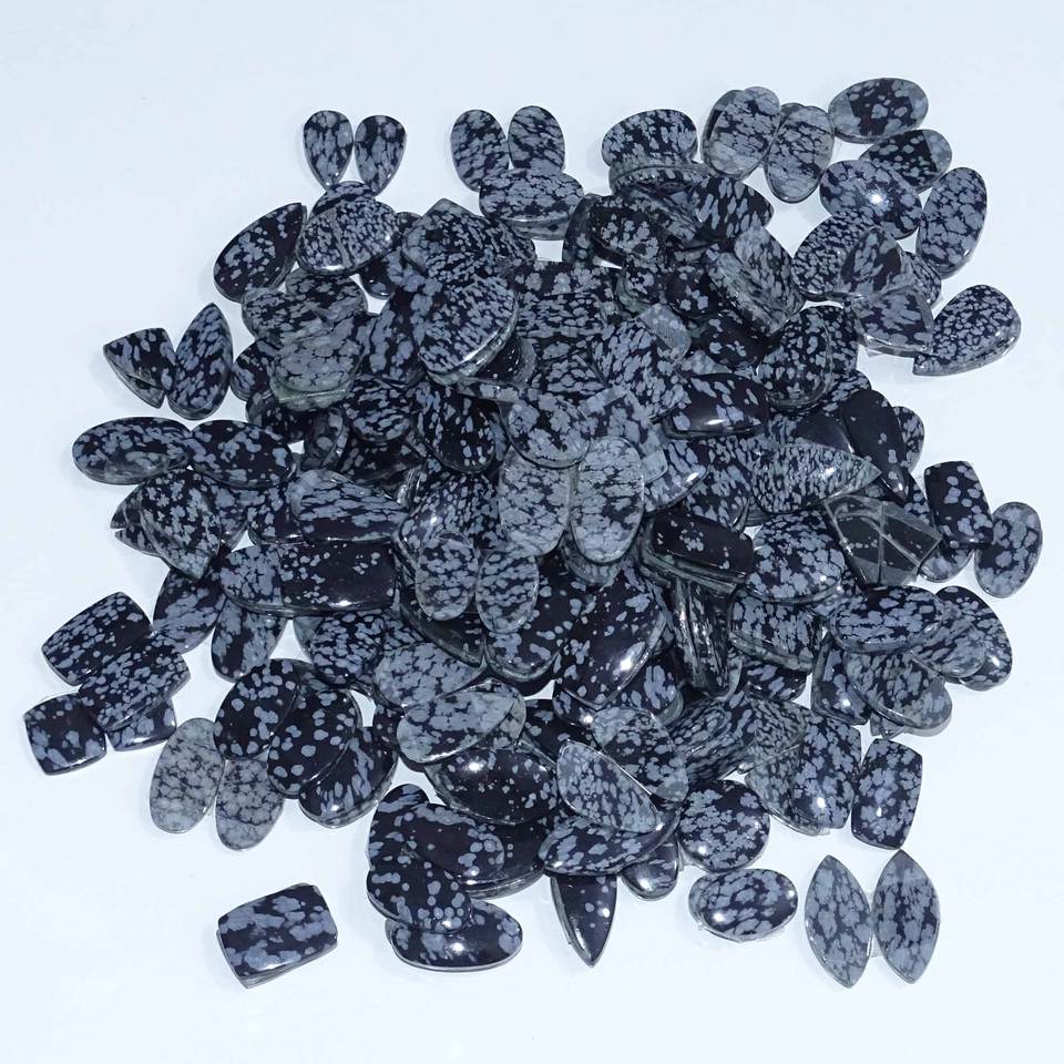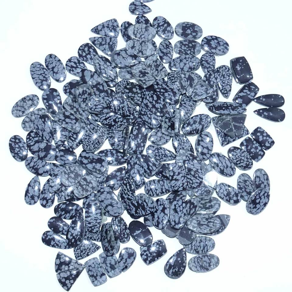 Paire de cabochons en obsidienne flocon de neige naturelle de haute qualité, fournitures de fabrication de bijoux, taille personnalisable, livraison rapide, Inde