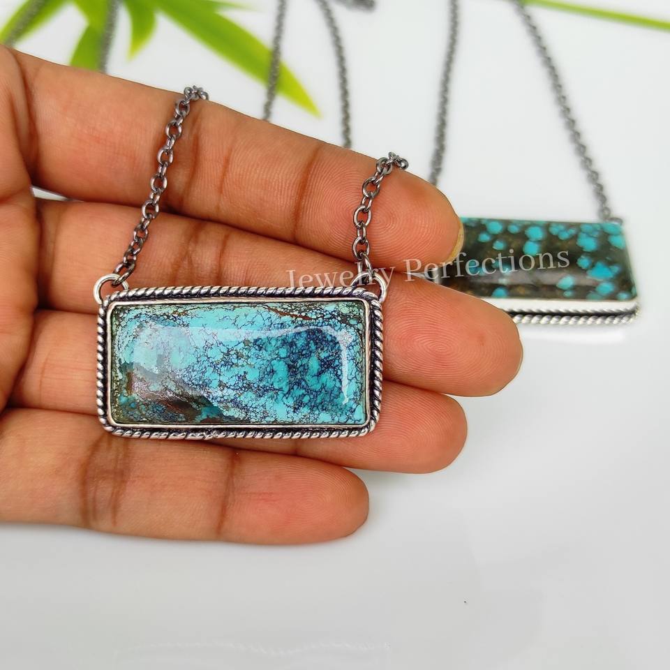 Collier en argent sterling avec barre en turquoise tibétaine naturelle de haute qualité, avec chaîne pour femmes, pendentif tendance, accessoires de bijoux