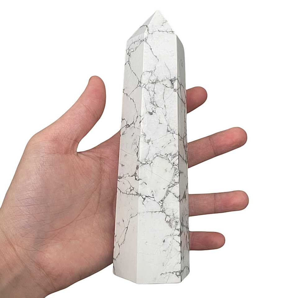 Tour de cristal Howlite blanc naturel de haute qualité 4-8 pouces Point de guérison poli Quartz amour méditation maison cristal artisanat