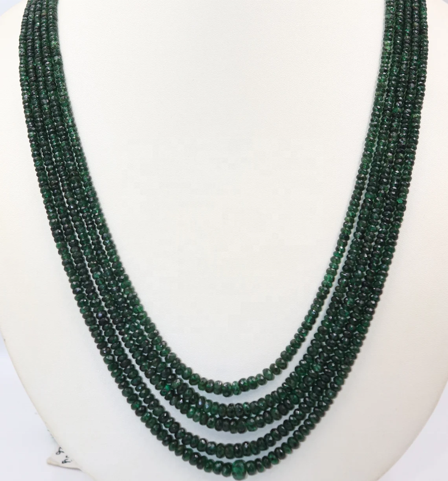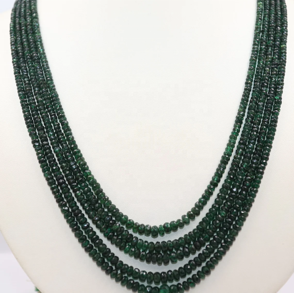 Name:Natural Zambian Emerald Faceted Rondelle Necklace