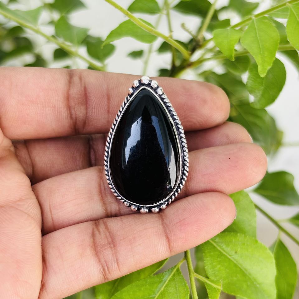 Product name:Natural black onyx Silver Plated Brass Rings
