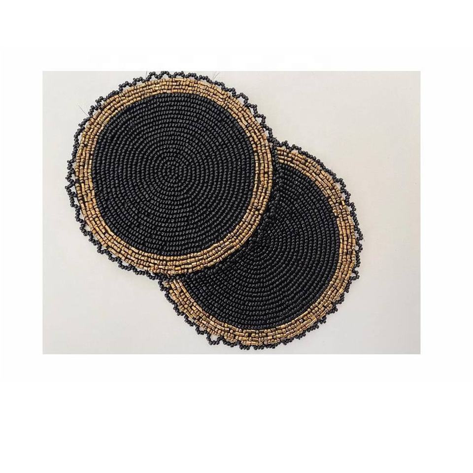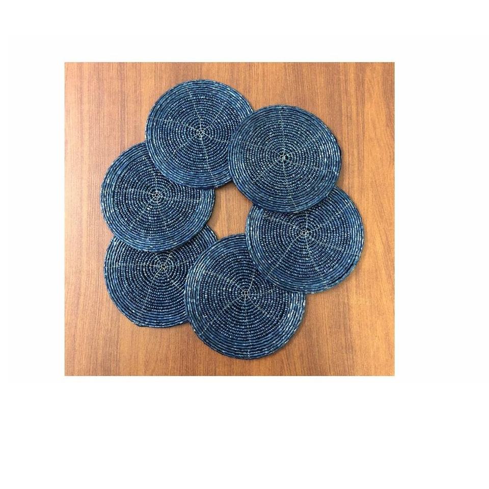 Ensemble de sous-verres perlés faits à la main bleu marine de haute qualité 6 pièces sous-verres décoratifs en verre moderne pour Table basse ou cuisine